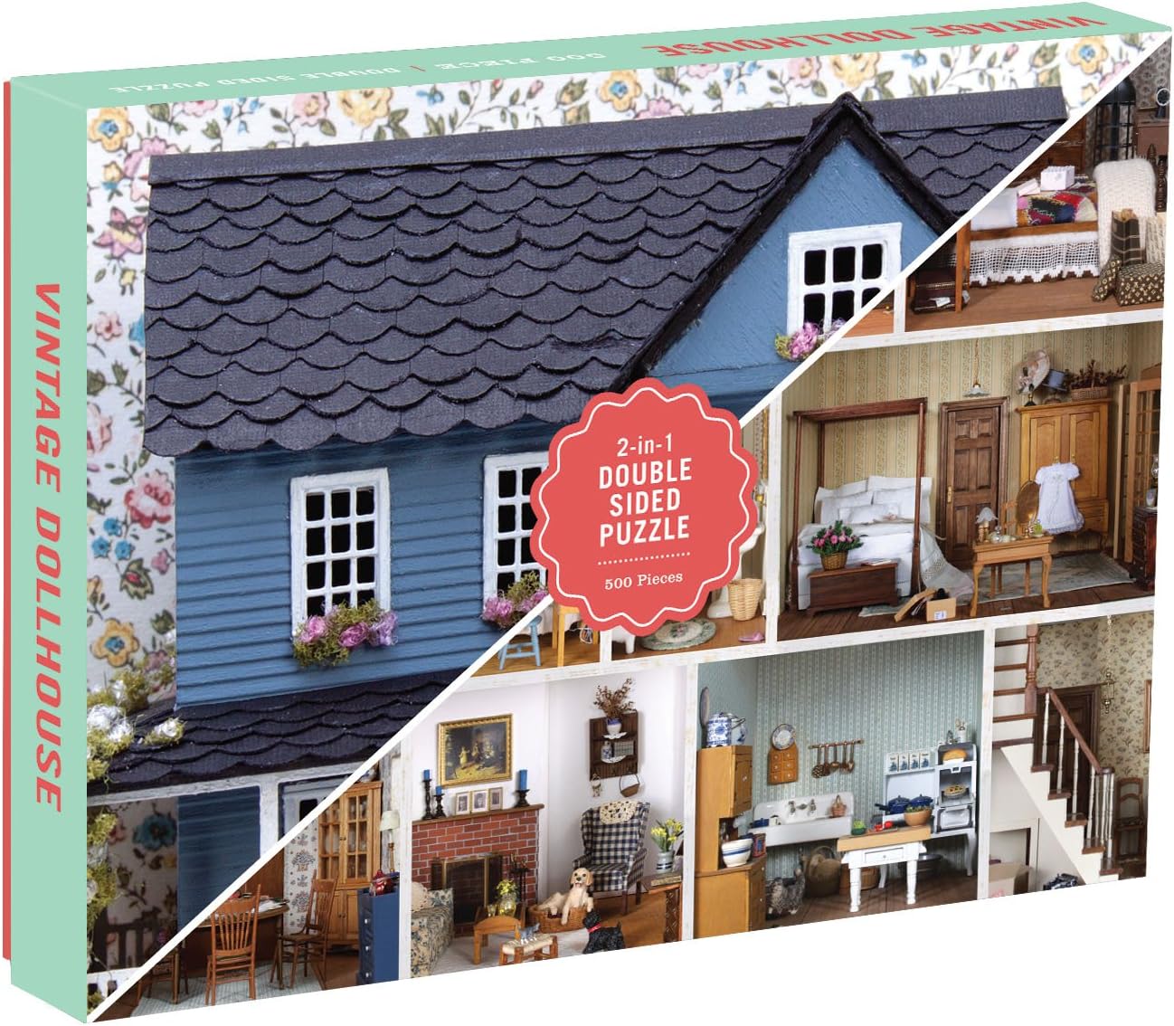 Galison Phat Dog 2-Sided Jigsaw Puzzle vintage dollhouses