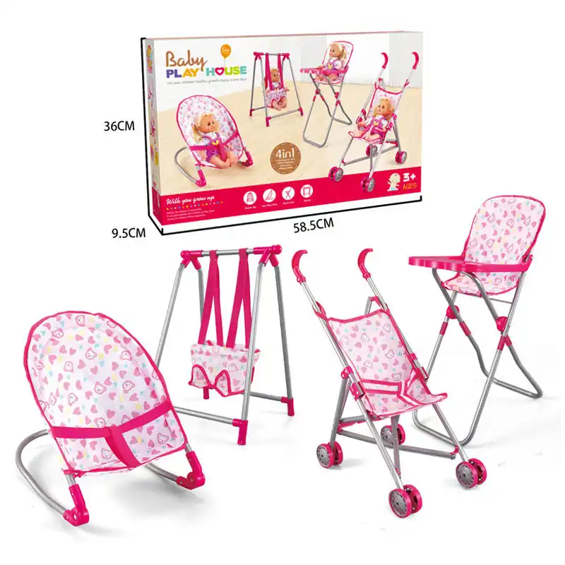 Hot selling Fei Li Doll stroller baby doll stroller and highchair set